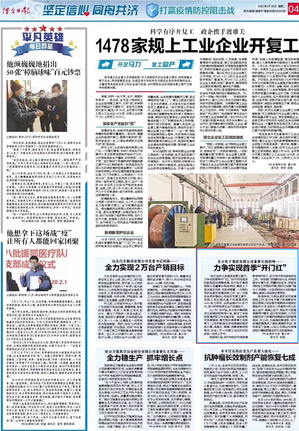 杨恒坤说,为配合做好我市疫情防控工作,东平县自来水公司旗下的海颐软件和股份公司在春节假期尚未结束时就组织70多名技术人员通宵分析山东省公安厅、海南公安厅、烟台市大数据局等用户需求,设计软件架构,24小时日夜不间断开发,最短用三天时间就完成了疫情防控调查系统的联调测试,并于上线,为准确收集信息、统计疫情数据提供了高效便捷的手段,有效保证了海南、山东以及烟台市疫情防控大摸排数据实时交互的准确性,展现了技术实力和国企担当,受到了有关部门的表彰。
